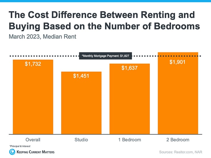 Utilizing nationwide statistics on median rental payments from Realtor.com and median mortgage payments from the National Association of REALTORS (NAR), the following chart highlights a comparison between renting and owning. As per the chart, if you require two or more bedrooms, owning a home can often be more economical than renting.